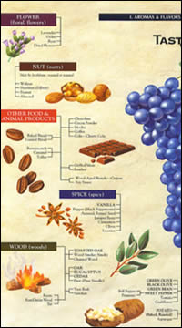The Chardonnay wine chart is a full-color depiction of the Chardonnay wine grape, and includes a complete range of aromas and flavors found in Chardonnay wine.